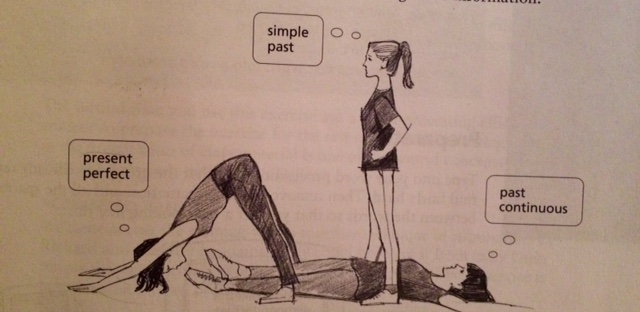 rysunek pokazyjący różnicę między angielskim czasami z poważnej książki More Grammar Games, Cambridge Universit Press…